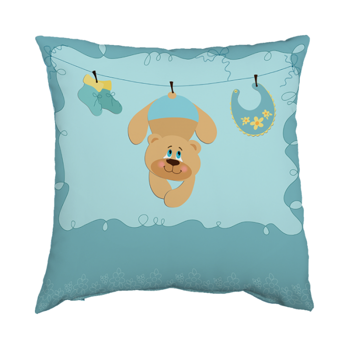 Cuscino in poliestere opaco, formato 40x40 cm circa con stampa personalizzata sul fronte e retro con grafica.