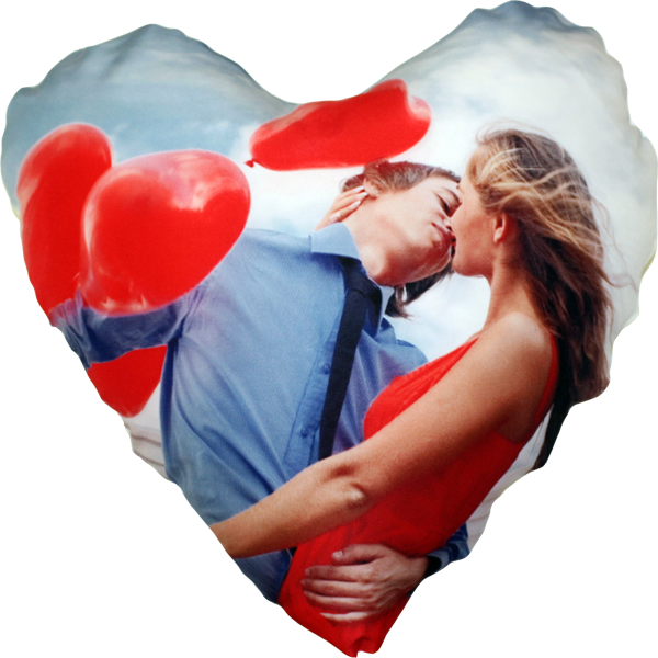 Cuscino in poliestere a forma di cuore, formato 55x55 cm con stampa personalizzata nel fronte e retro colorato