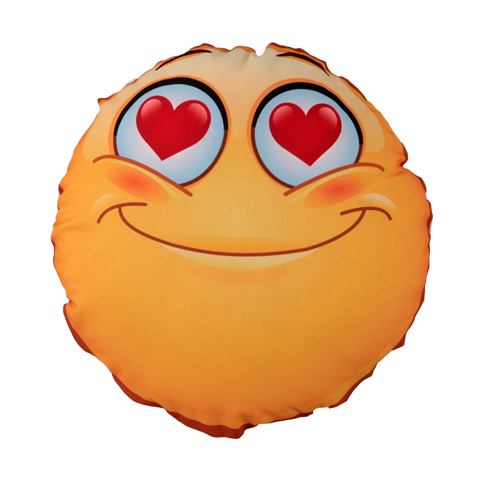 Cuscino rotondo in poliestere, diametro 40 cm con stampa personalizzata nel fronte e retro stampa grafica Emoji.
