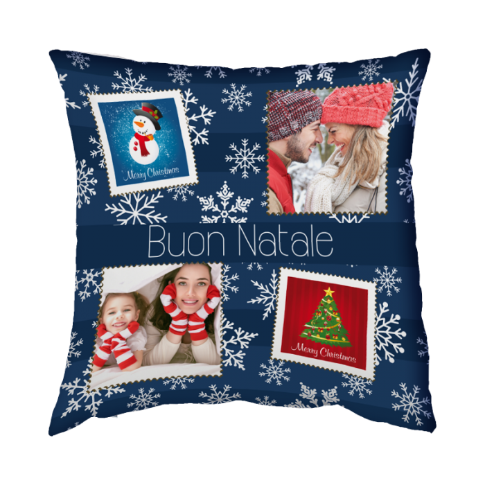 Cuscino 40x40 cm in poliestere con stampa personalizzata Natale retro blu