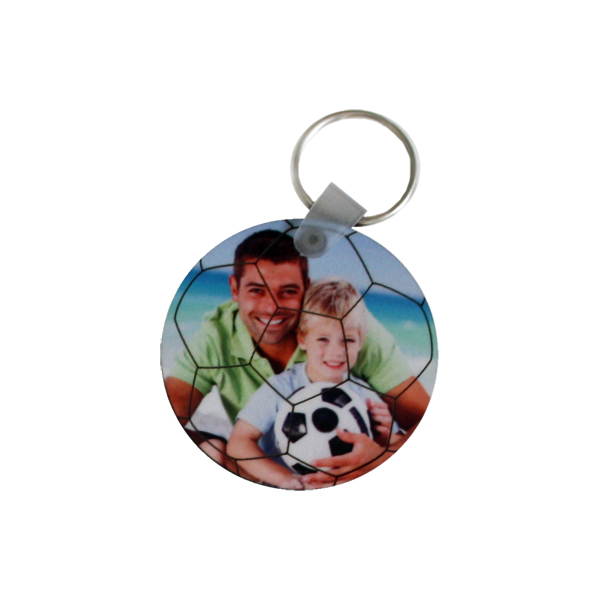 Portachiavi rotondo in legno mdf, spessore 3 mm con incisione pallone da calcio.
