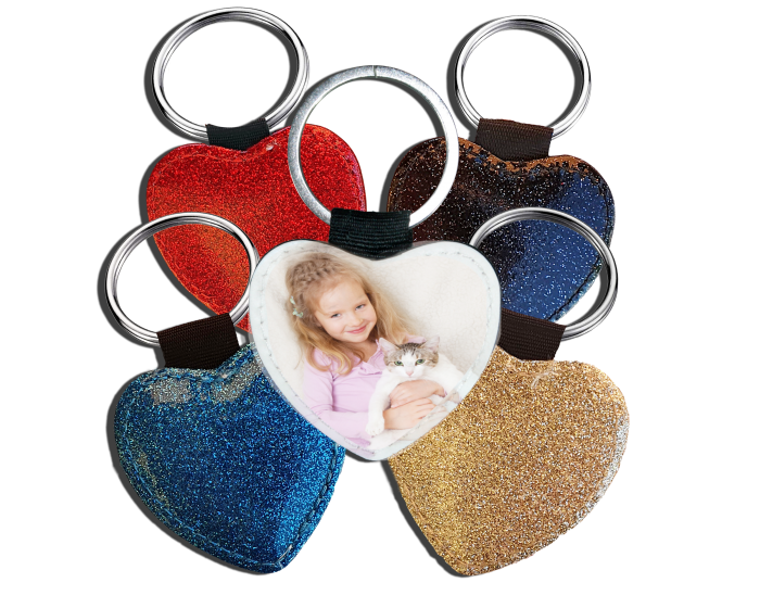 Portachiavi Cuore Glitter con stampa personalizzata solo retro.